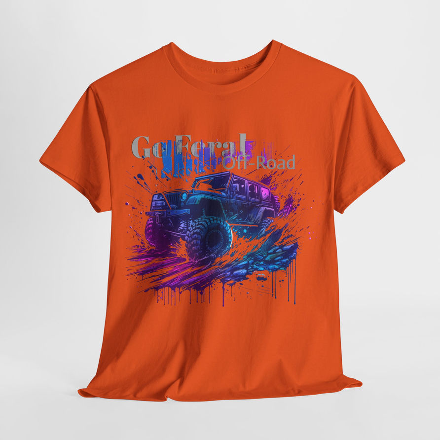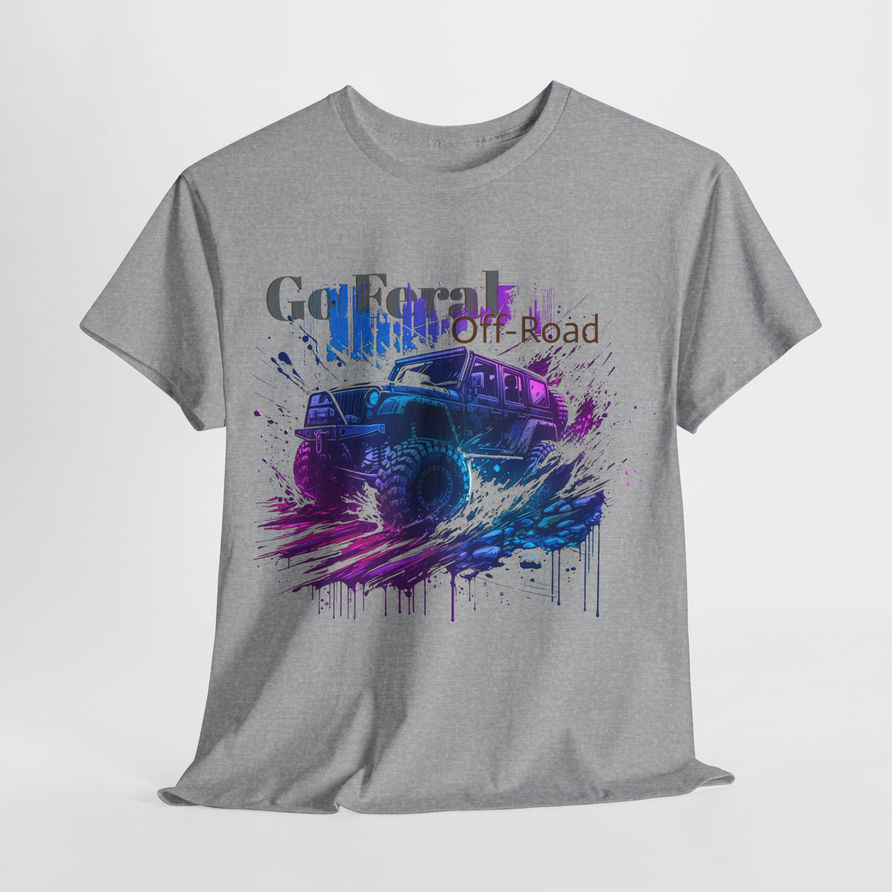 An incredibly vibrant graphic tee showcasing Go Feral Off-Road, perfect for those who love outdoor adventures and off-road activities. This heavy cotton tee offers year-round comfort and sustainability, suitable for casual or semi-formal wear. Ideal for off-road enthusiasts and nature lovers.