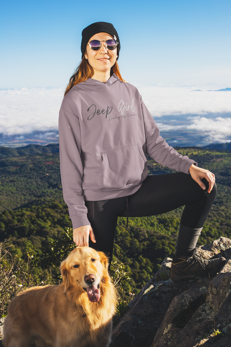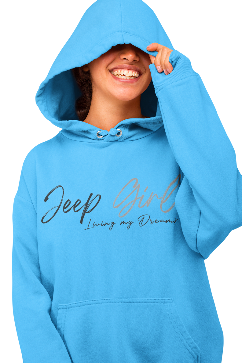 Stay warm and stylish with this Jeep Girl Living My Dreams Hoodie. Perfect for off-road enthusiasts and those who love adventure.