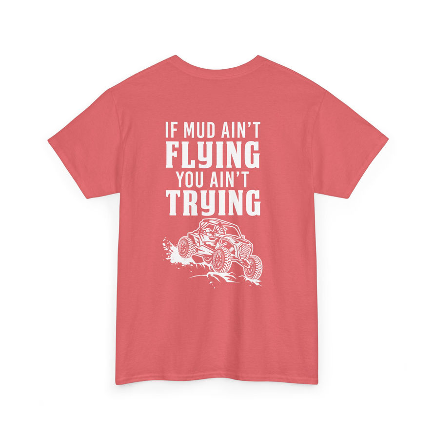 A unisex cotton T-shirt featuring the bold statement 'If Mud Ain't Flying'. This shirt is perfect for those who love off-road adventures.