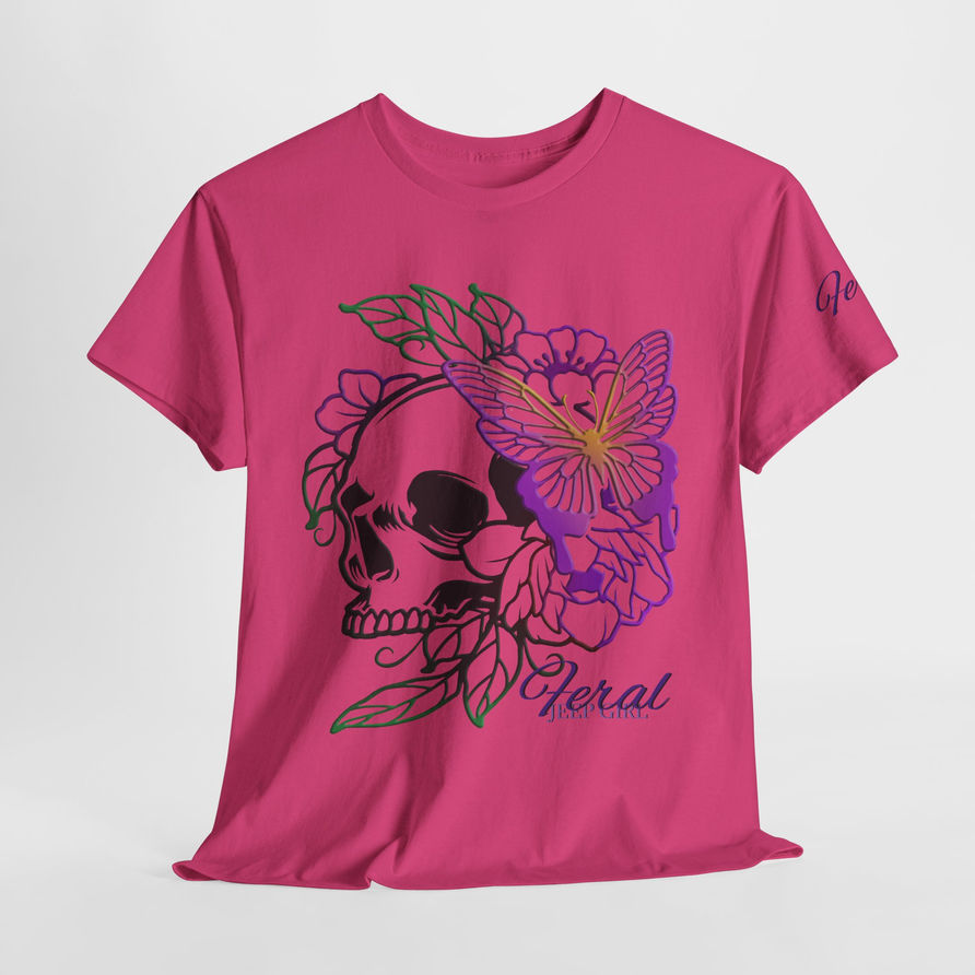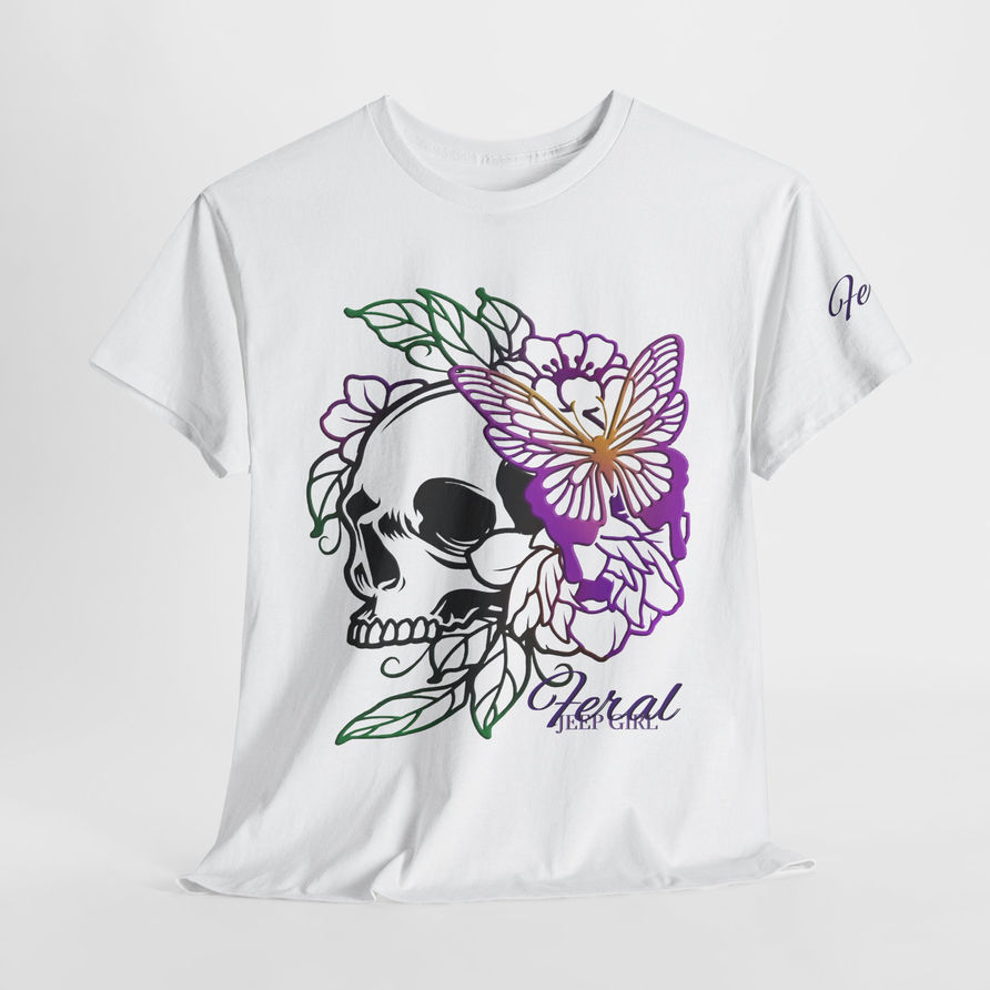 Skull & Butterfly Feral Jeep Girl Design T-Shirt ("Feral" on left Sleeve)
